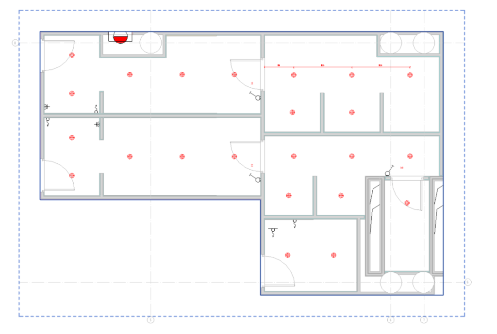 часть основного вида, к которому можно применить другой шаблон и дополнить аннотациями. Если подвести мышь к границе фрагмента, появится пунктирная граница, с помощью которой можно регулировать обрезку аннотаций (на скриншоте видно, что марки осей находятся как раз на границе, хотя в модели они намного дальше).