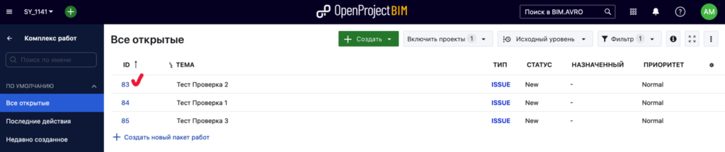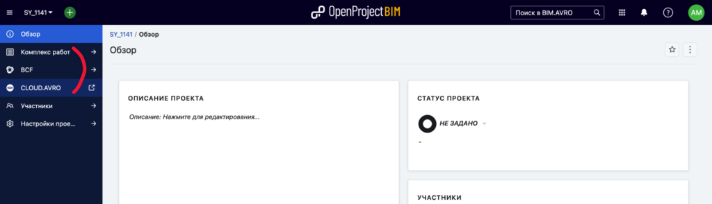 Сразу после авторизации попадаем на домашнюю страницу OpenProjectBIM. Переходим: Выберите проект — SY_1141