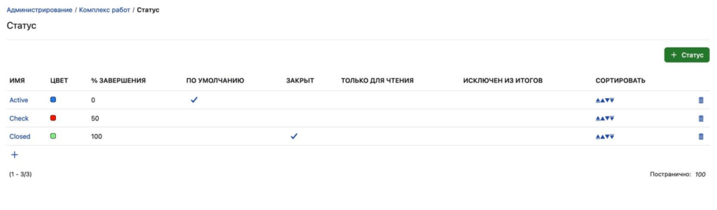 Настройка статусов