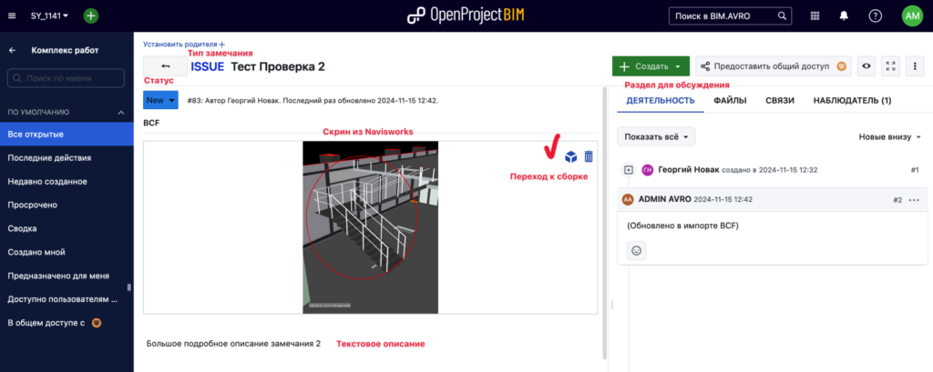 | BCF | Сборка IFC+карточки с замечаниями |