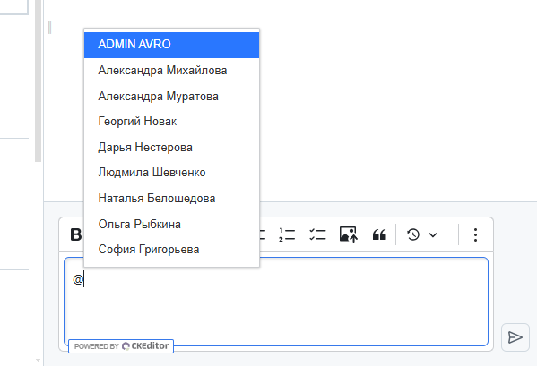 Чтобы призвать к ответу человека через Комментарии в разделе Деятельность нужно отметить его через «@»