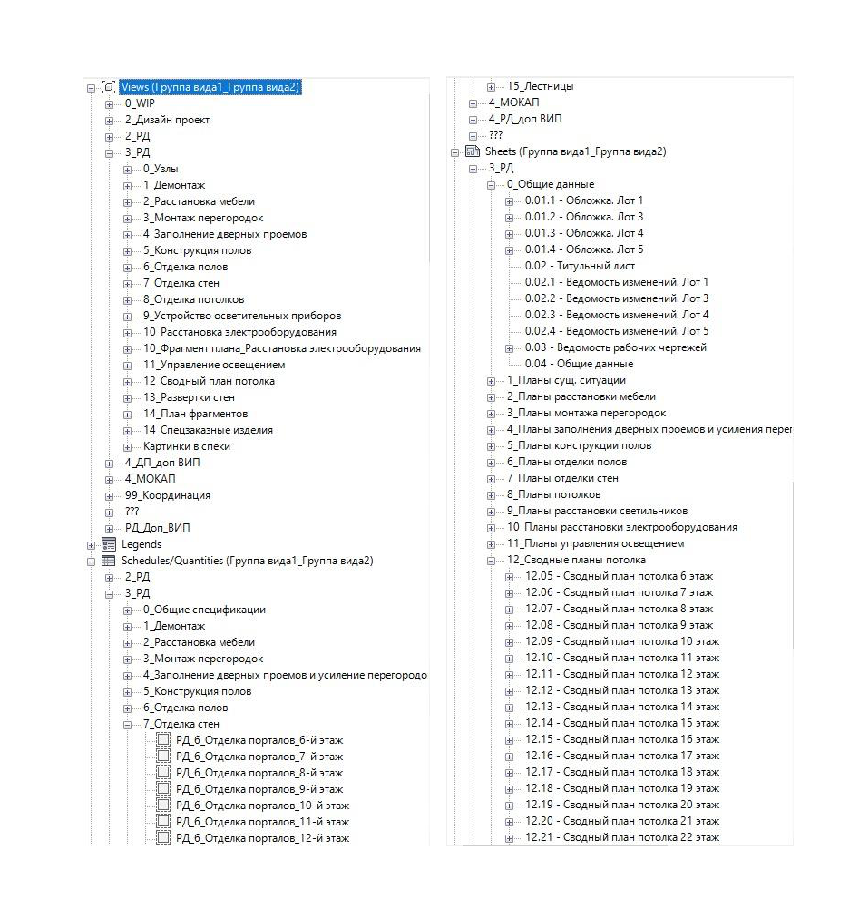 диспетчер проекта должен быть настроен через Группа вида1 + Группа вида 2