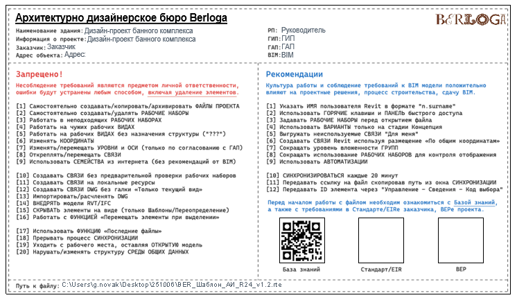версия revit должна соответствовать согласованной с заказчиком