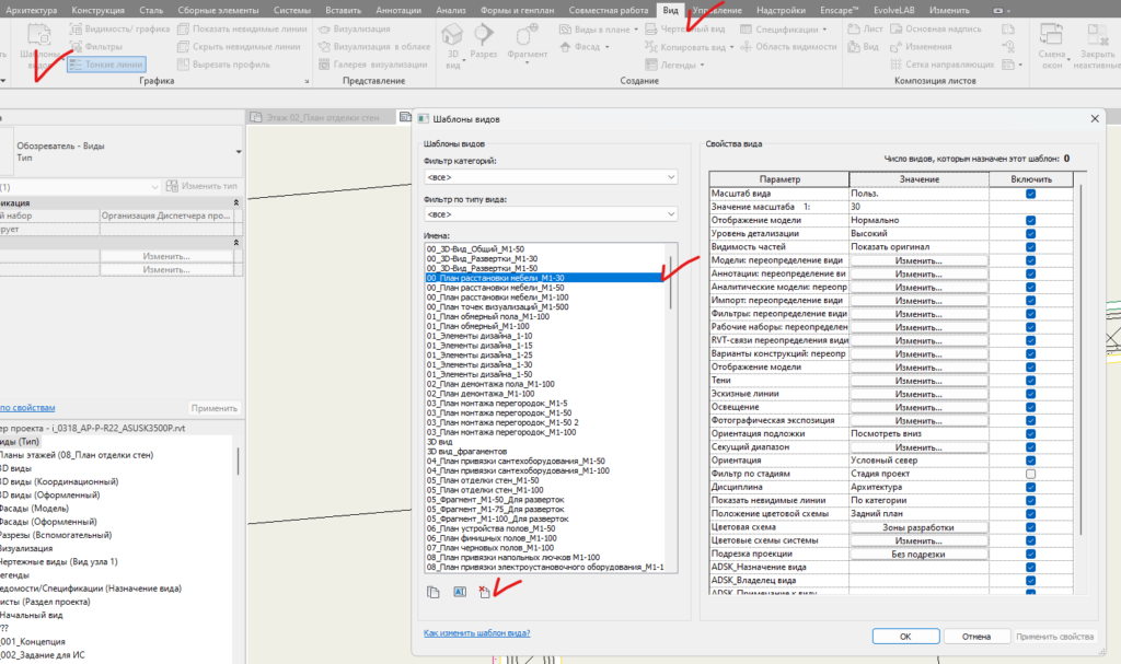 Удаление шаблонов Вида