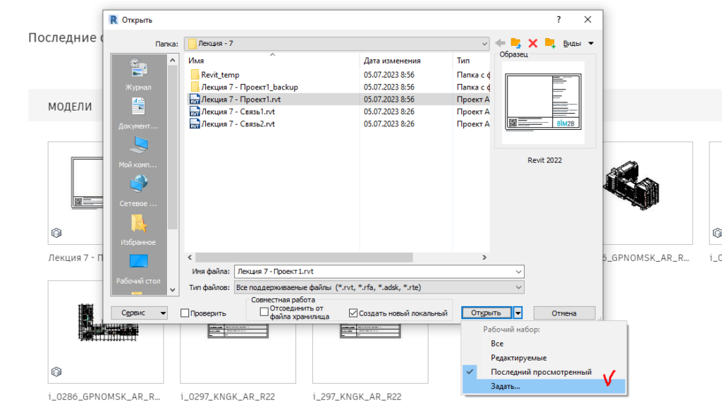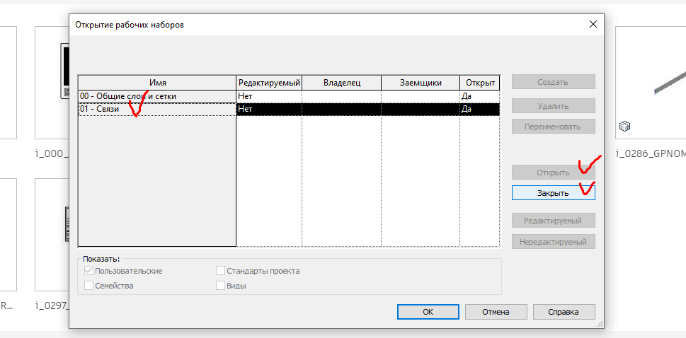 При соблюдении данного требования вы получите возможность отключать данный рабочий набор перед открытием проекта. Это необходимо, если вы используете большое количество связей и файл открывается очень долго