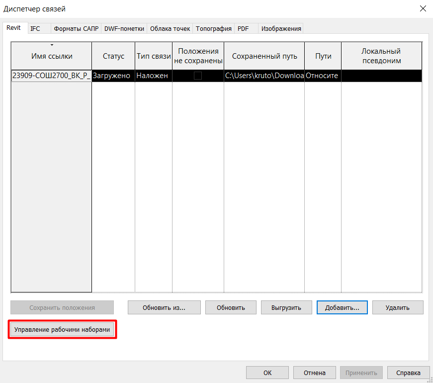 - Все файлы Revit должны содержать рабочие наборы. Элементы, которые не должны быть видимыми в моделях смежных разделов помещаются в рабочие наборы с префиксом «#». Пример – «#Арматура» или «Формообразующие». Закрытие рабочих наборов связей производится после загрузки связи в модель единоразово и служит облегчению работы основной модели.