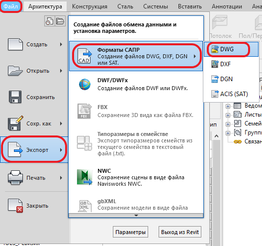 Более подробную информацию можно найти в инструкции по взаимодействию Revit и AutoCad.