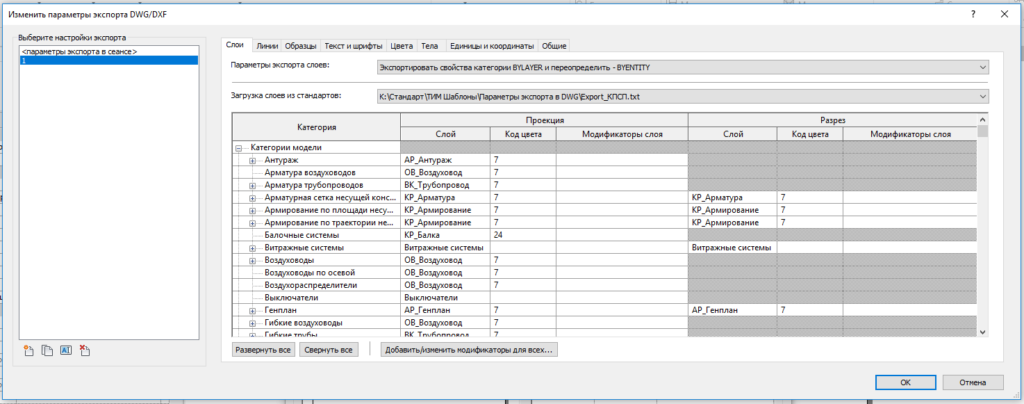Нажимаем «Ок» и далее экспортируем выбранные виды.