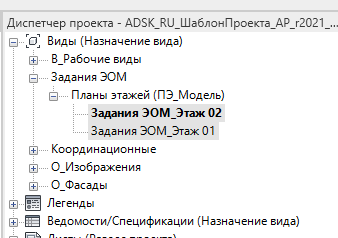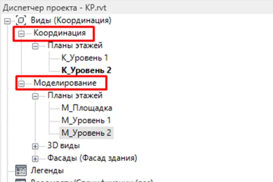 1.Создание новых видов для всех существующих уровней. Необходимо переименовать и сгруппировать виды в зависимости от назначения в файле модели.